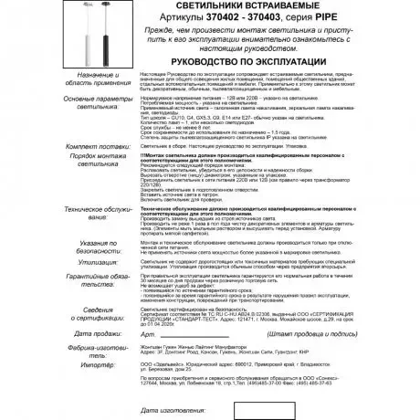Подвесной светильник встраиваемый Novotech PIPE 370402