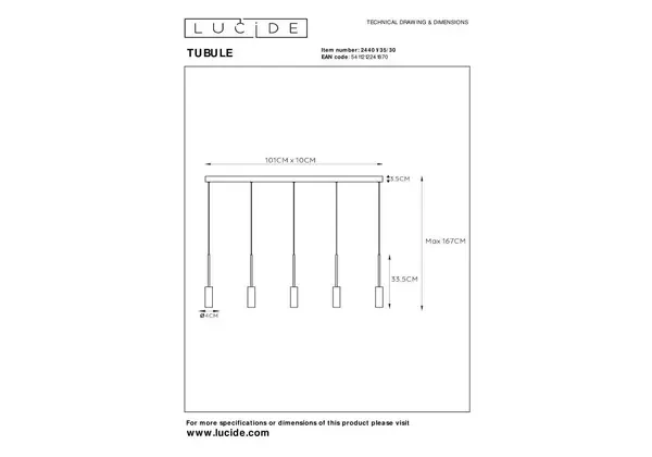 Подвесной светодиодный светильник Lucide Tubule 24401/35/30