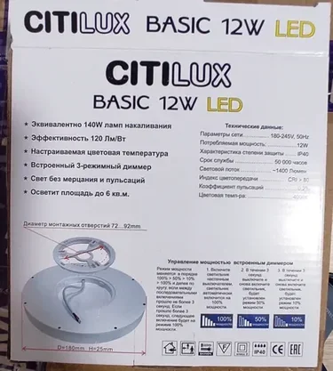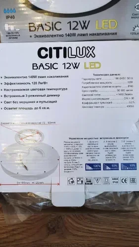 Потолочный светодиодный светильник Citilux Бейсик CL738120N