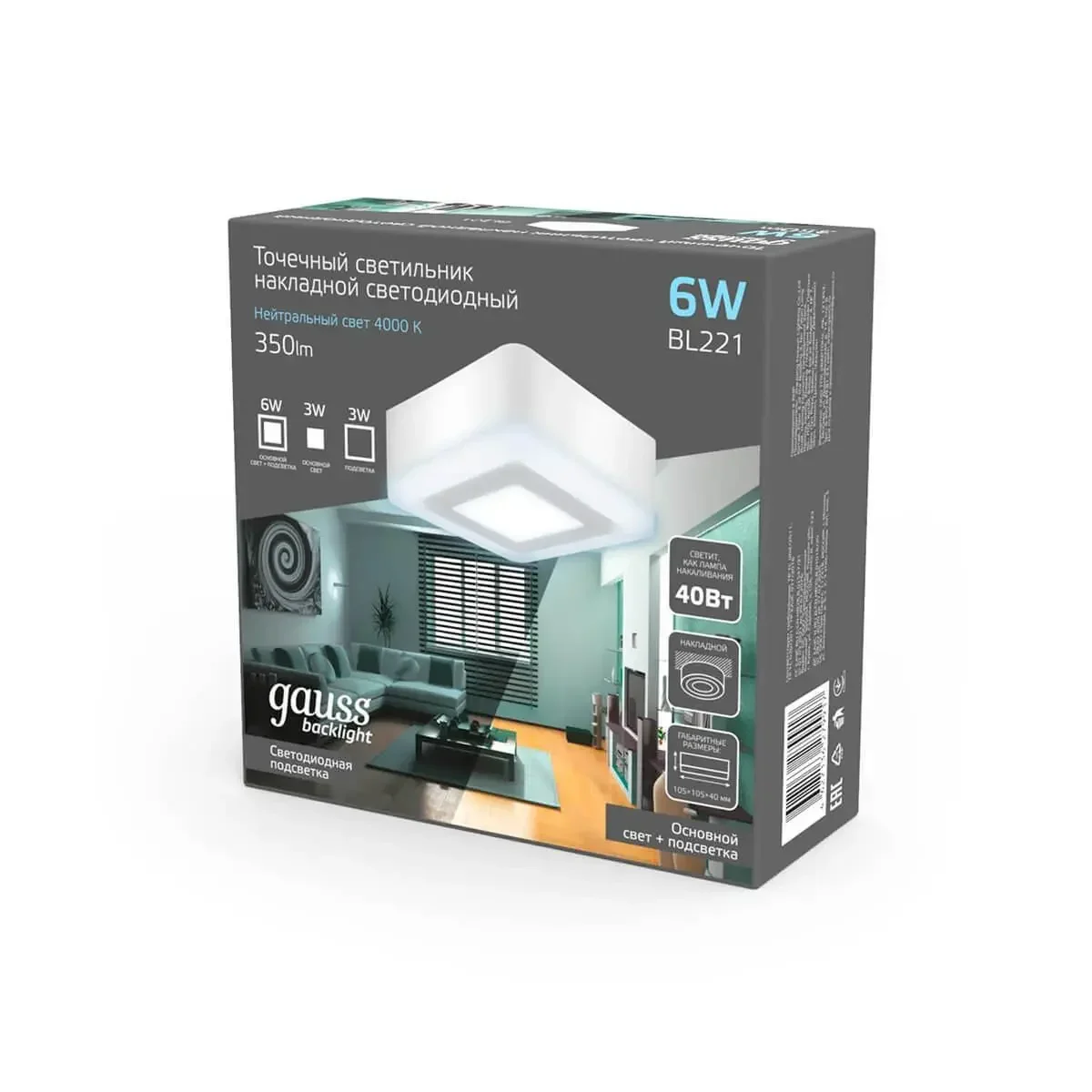 Потолочный светодиодный светильник Gauss Backlight BL221