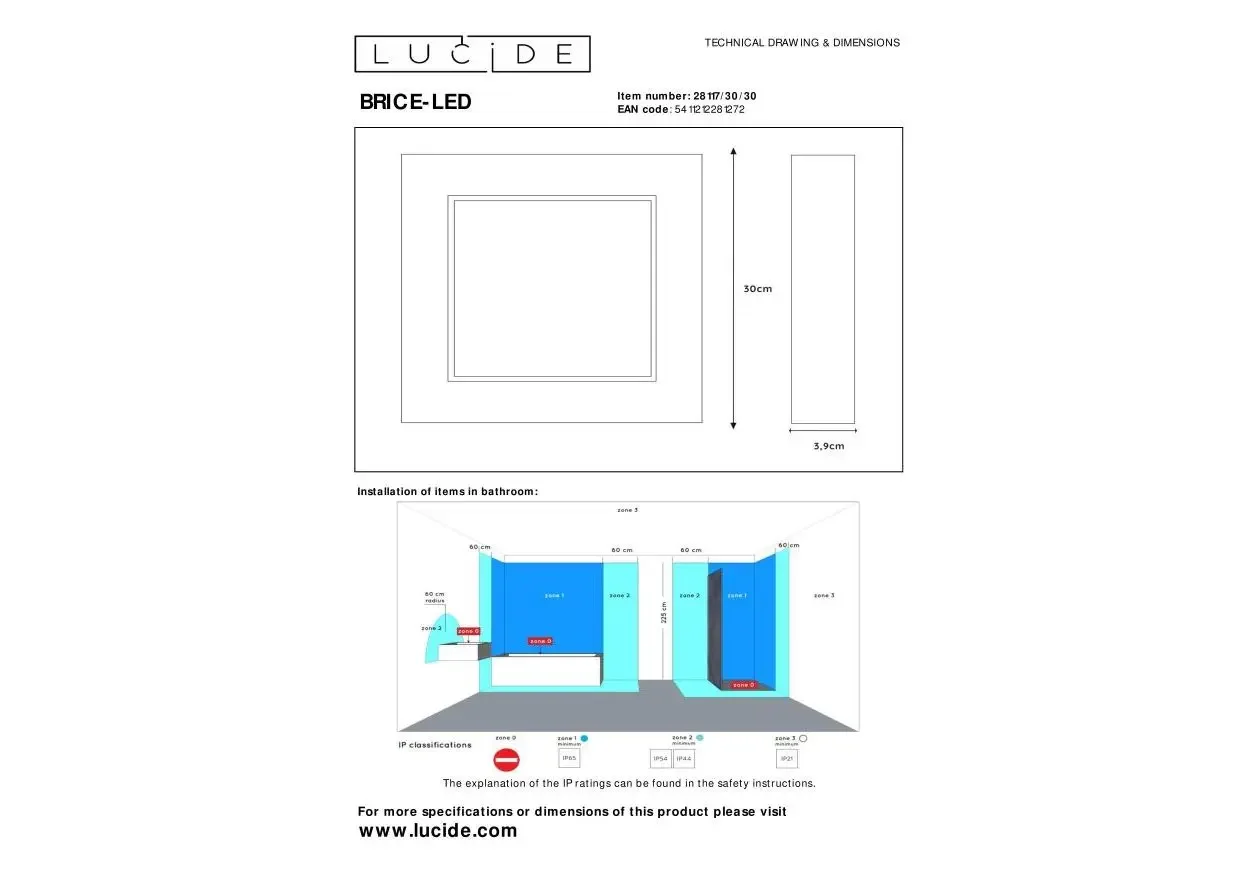 Потолочный светодиодный светильник Lucide Brice-Led 28117/30/30