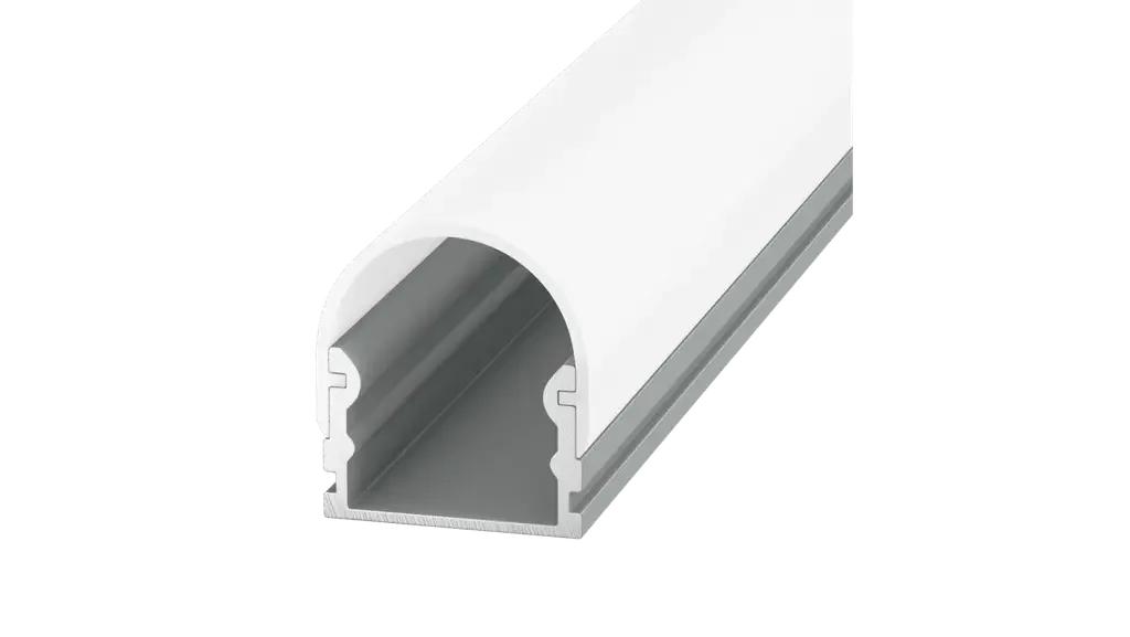Алюминиевый профиль для светодиодной ленты – это надежный и простой способ монтажа однорядных и двухрядных светодиодных лент. Его можно использовать при оформлении интерьеров и ландшафтных дизайнов, для подсветки торговой мебели и оборудования, при создании подсветок рабочих мест и освещении отдельных помещений или небольших площадей. Профиль Round 2121 комплектуется всеми необходимыми элементами для установки: матовым полукруглым светорассеивающим экраном, декоративными торцевыми заглушками, клипсами и саморезами. Материалом для производства профиля под светодиодную ленту служит анодированный алюминий, который не только отлично защищает монтажные платы светодиодных лент от попадания на них влаги, конденсата и пыли, но также обеспечивает отвод образующегося при работе светодиодов тепла. Такие характеристики позволяют значительно увеличить срок эксплуатации LED-продукции. Профиль Round 2121 имеет базовые размеры 2000х21х14 мм. При необходимости может разрезаться на отрезки любой длины при помощи ножовки по металлу. В таких случаях мы предлагаем приобрести дополнительные крепежные элементы и заглушки. Если необходимо произвести монтаж большого числа светодиодных лент, вы можете приобрести у нас алюминиевый профиль оптом, а также все необходимые комплектующие и приборы для управления работой LED-подсветки.