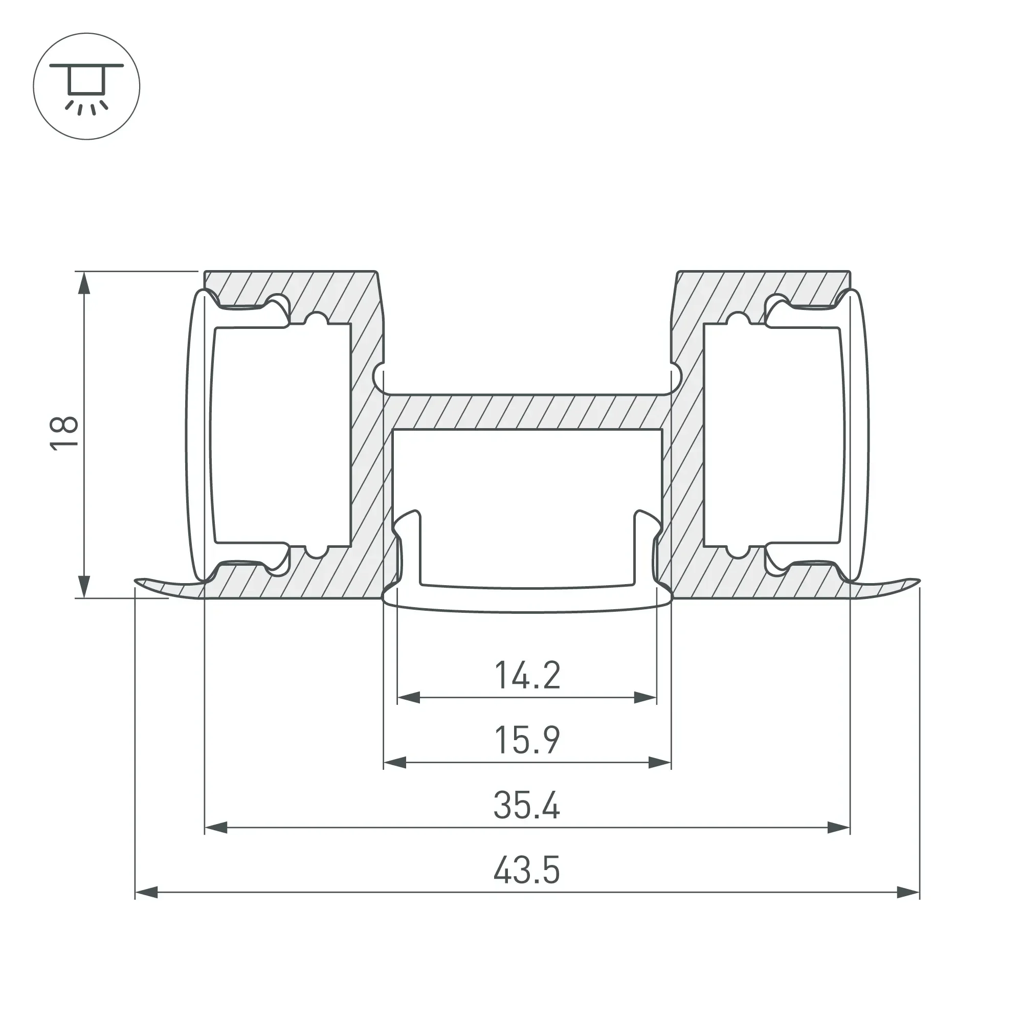 Накладной профиль из анодированного алюминия для основного освещения и контурной подсветки. Уникальная конструкция профиля позволяет установить 3 ленты в 3-х плоскостях и достичь угла освещения более 270°. Габаритные размеры профиля составляют 2000 мм в длину, 43,5 мм в ширину и 18 мм в высоту. Площадки для установки светодиодных лент позволяют использовать ленты шириной до 12 мм и мощностью до 11 Вт/м каждая. Это обеспечивает гибкость в выборе светодиодных лент и создает потрясающие световые решения. Экраны, заглушки и другие аксессуары не включены в комплект и приобретаются отдельно. Цена указана за 1 метр профиля. Отличное решение для создания современных световых проектов.