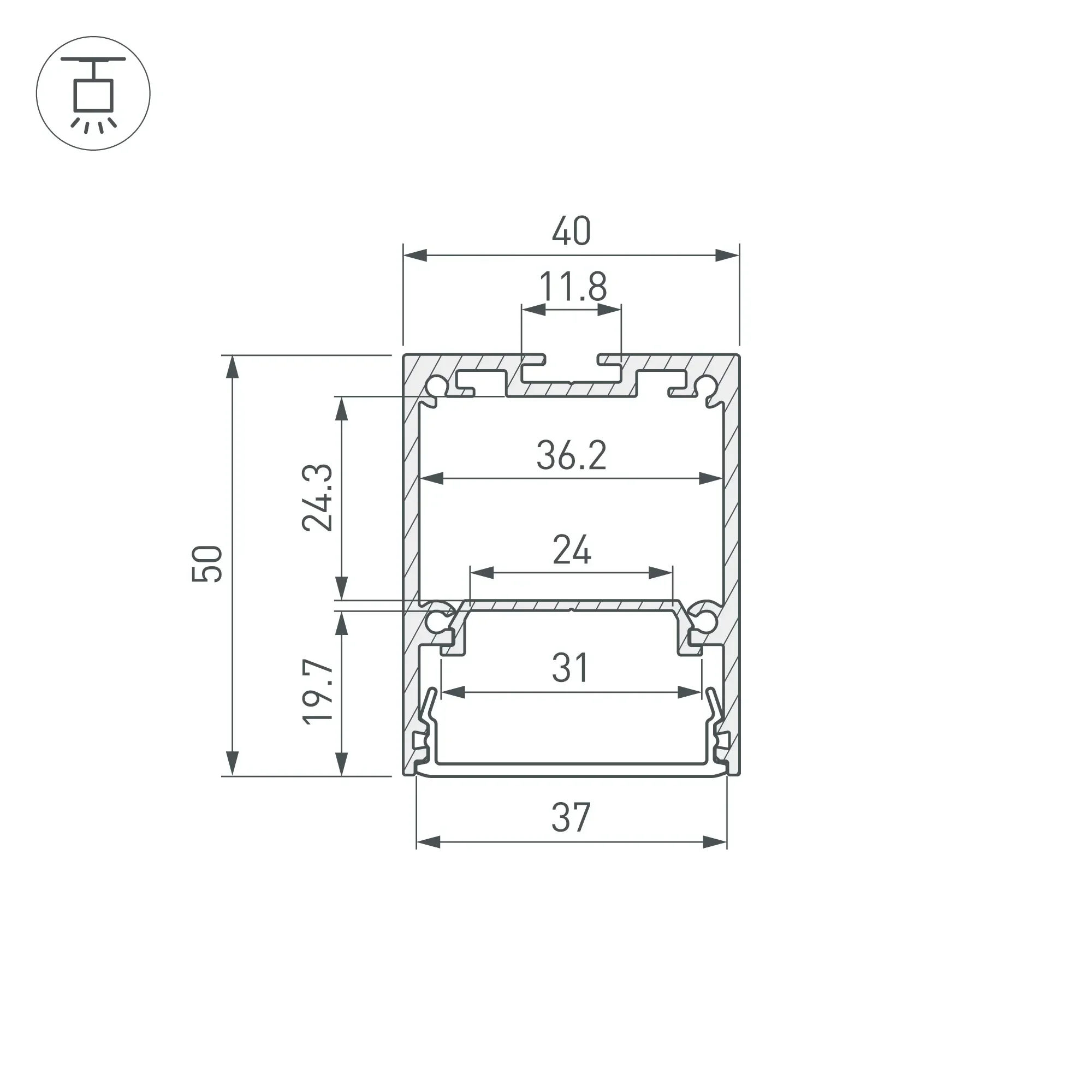 Профиль IP-LINE-4050-2000 ANOD (Arlight, Алюминий) 055135 055135