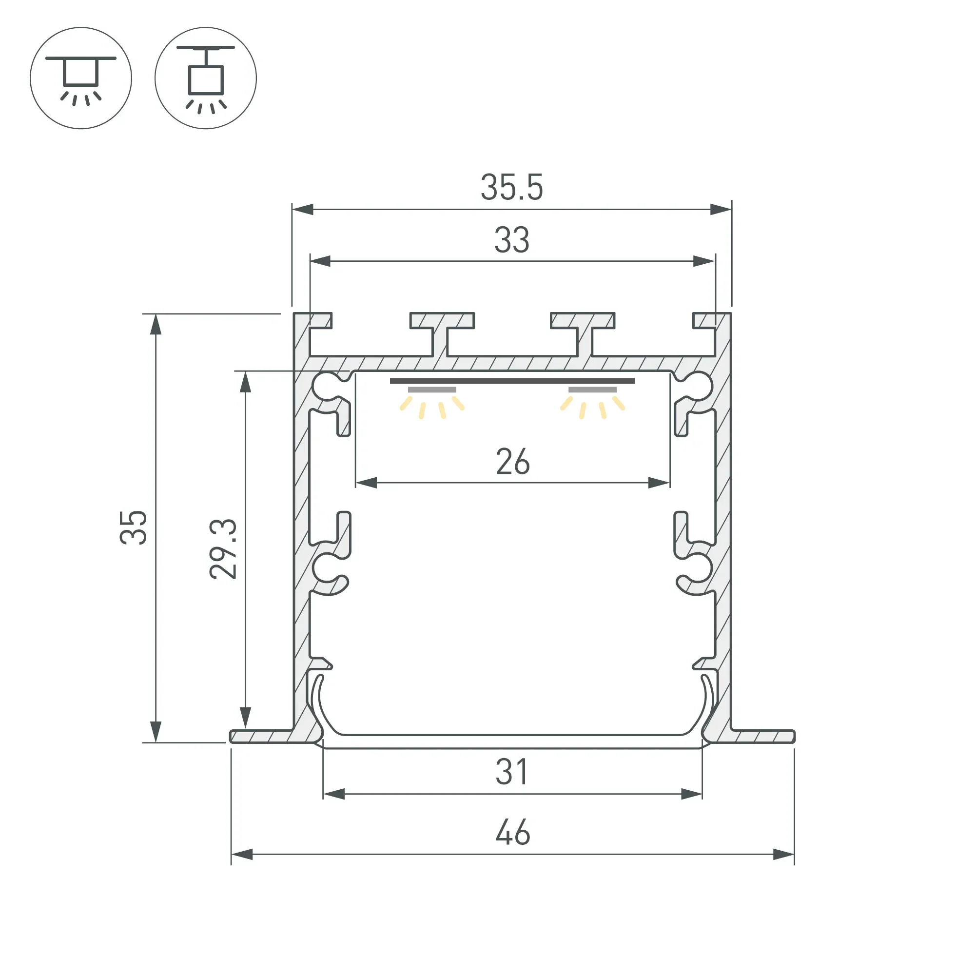 Для прямоугольных светильников