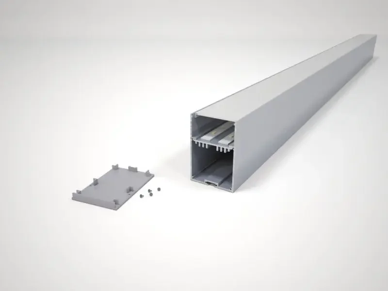 Линейные профильные светильники позволяют создавать стильное освещение в домашних и офисных интерьерах. Подвесные светильники часто используются в качестве основного освещения, так как ширина профиля позволяет разместить до трех рядов светодиодных линеек и выдавать мощный световой поток. Возможно монтировать на подвесах или накладным способом. Данный вид светильников имеет отдельный отсек в профиле для установки в нем блока питания.