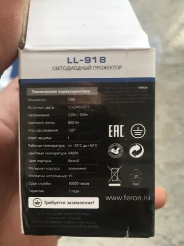 Прожектор светодиодный 2835 SMD 10W 6400K IP65 AC220V/50Hz, белый, LL-918