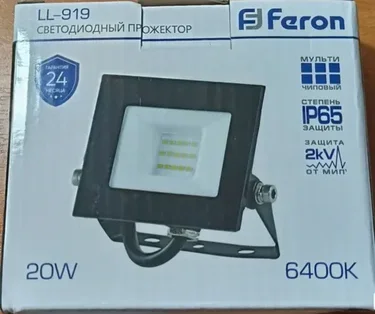 Прожектор светодиодный 2835 SMD 20W 6400K IP65 AC220V/50Hz, черный, LL-919