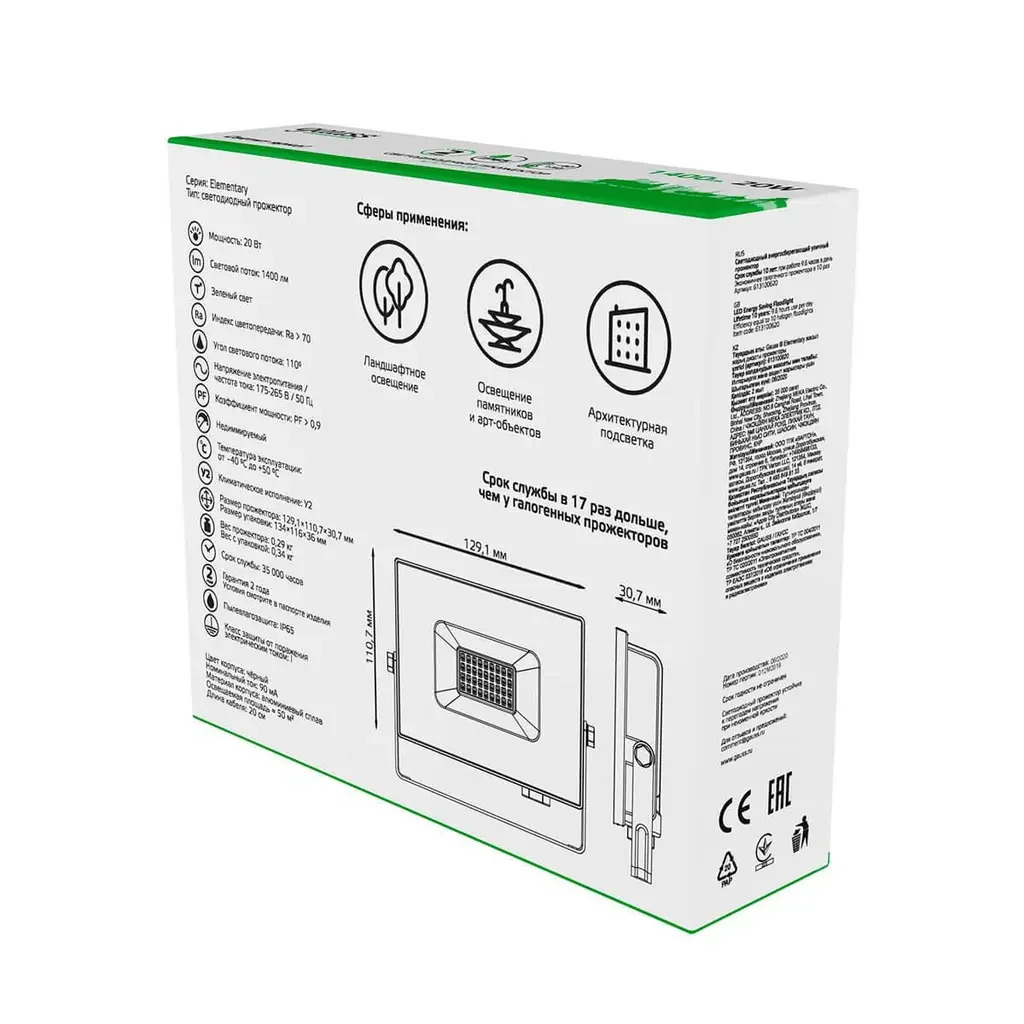 Прожектор светодиодный Gauss Elementary 20W 613100620