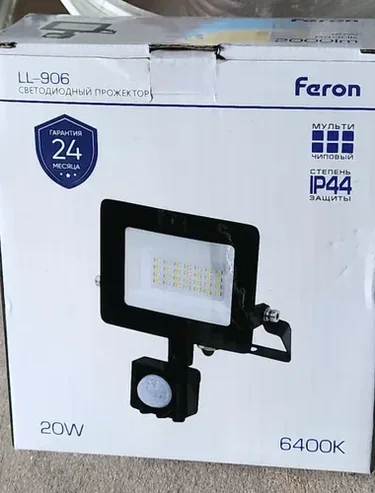 Прожектор светодиодный с датчиком движения 20W 6400K 230V черный IP44, LL-906