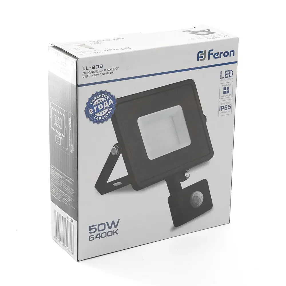 Прожектор светодиодный с датчиком движения 50W 6400K 230V черный IP44, LL-908