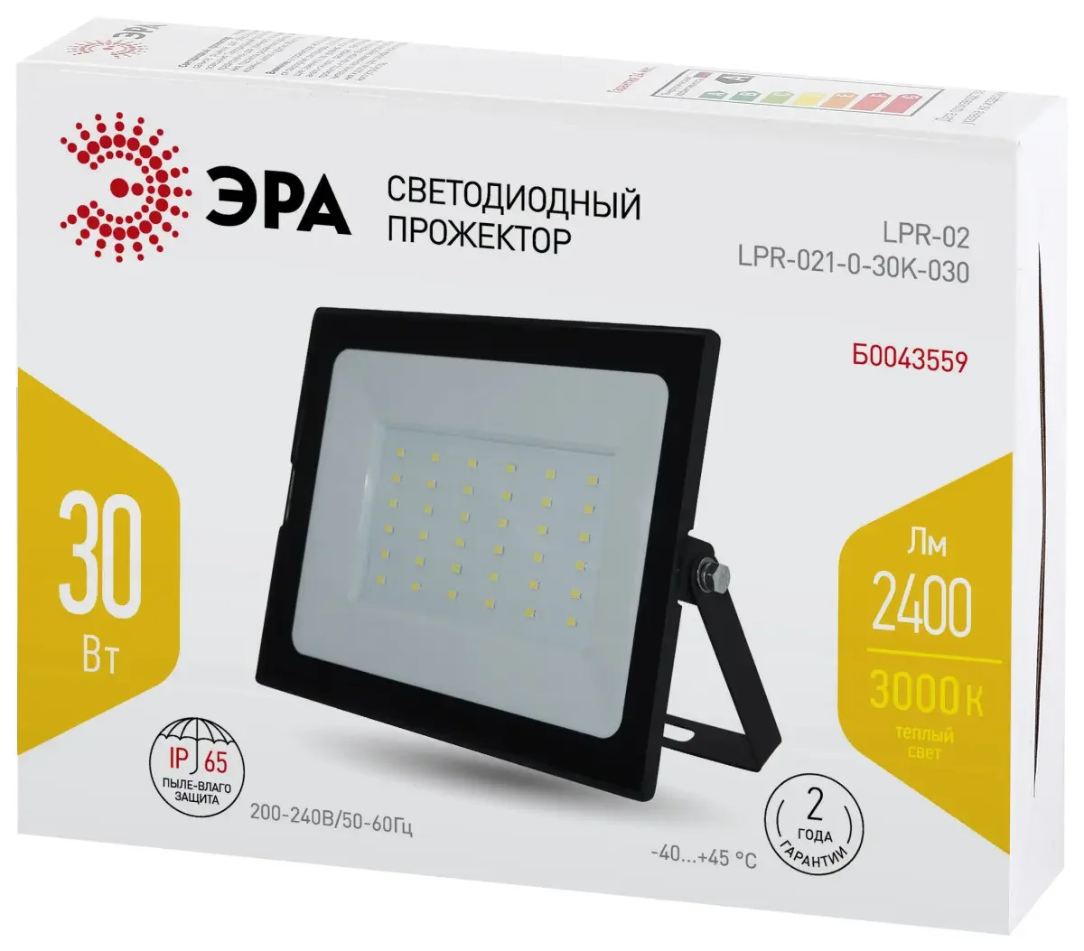 Прожектор светодиодный уличный ЭРА LPR-021-0-30K-030 30Вт 3000К 2400Лм 139х104х35