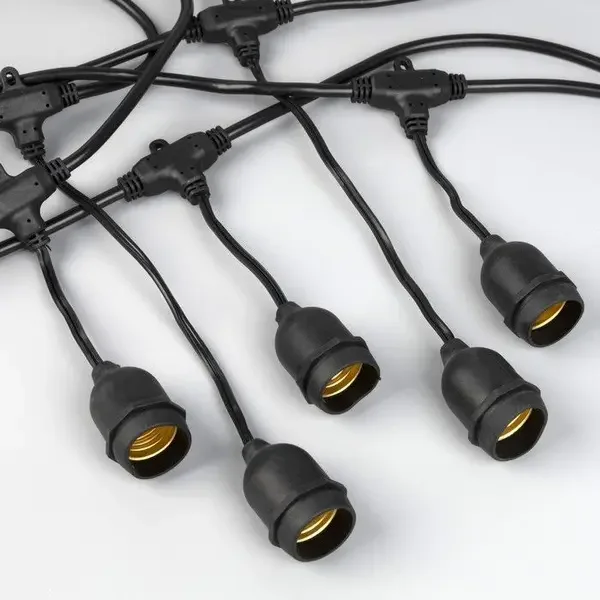 Ретро Гирлянда 20м, Провод Черный ПВХ, Шаг 100 см, 20 Подвесных Патронов, IP65