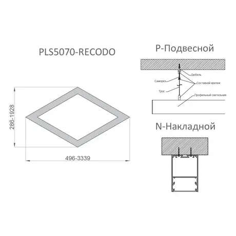 - КРЕПЛЕНИЕ - возможно изготовление различных видов: тросовая система для подвеса, жесткая система для накладного крепления или пружинная система для встраиваемого монтажа.
