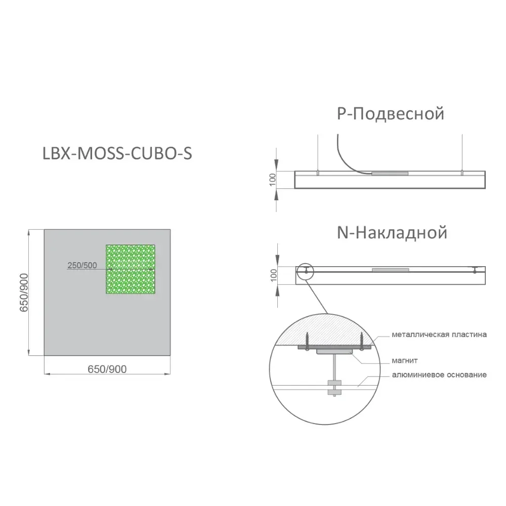 - RVE-LBX-MOSS-CUBO-S-650 - 55Вт (5 500Лм) 650x650x100мм - 29 065 руб.