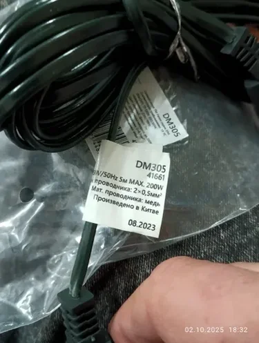 Сетевой шнур для гирлянд 5м, 2*0,5мм2, IP20, темно-зеленый, DM305