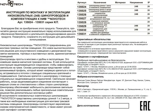 Шина низковольтная встраиваемого накладного или подвесного монтажа 2м Novotech Kit 135025