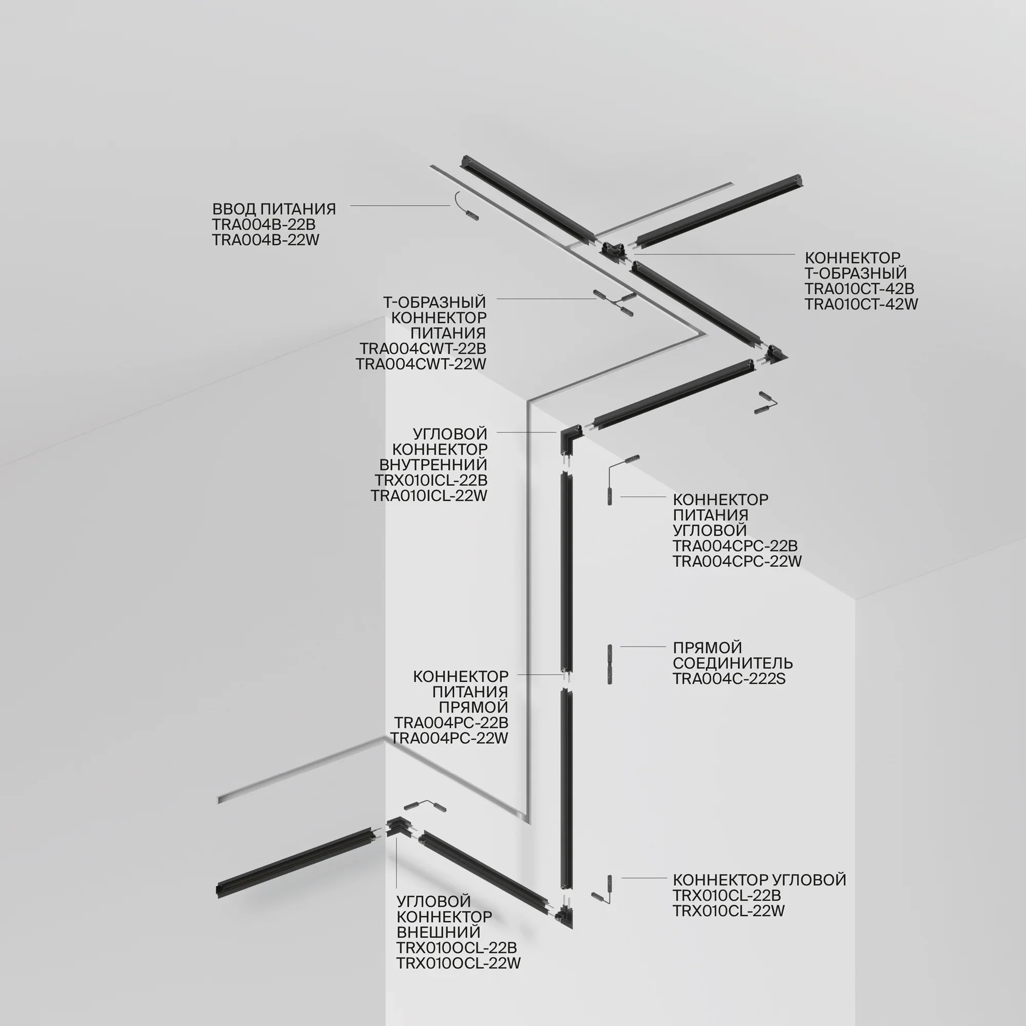 Шинопровод 2м Gravity встраиваемый черный TRX010-422B