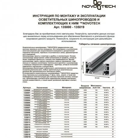 Шинопровод с токопроводом и заглушкой 1м Novotech 135001