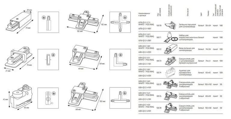 Соединитель для шинопроводов Т-образный Volpe UBX-Q121 K31 WHITE 10578