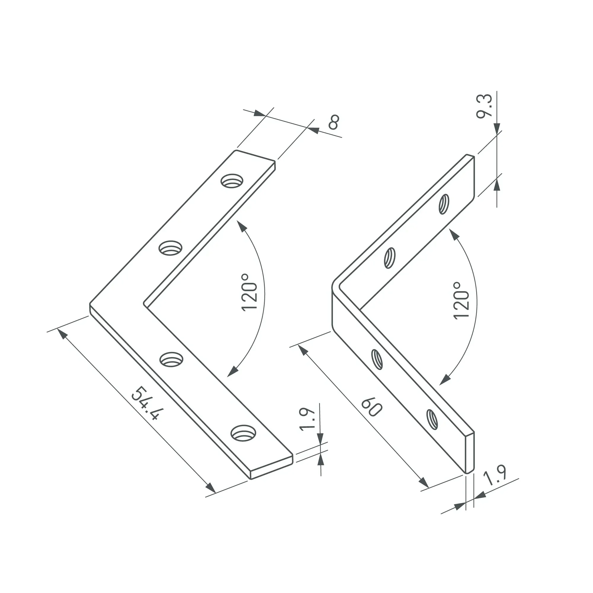 Коннекторы (4 шт. - два внутренних и два внешних) для соединения двух отрезков профилей LINE-6070 под углом 120° в разных плоскостях. Устанавливаются в паз, фиксируются идущими в комплекте винтами. Применяются при изготовлении светильников сложной геометрии.