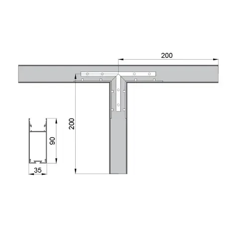 Соединитель RVE-CONNECT-T угловой T-образный для встраиваемого профиля 35x90 мм.