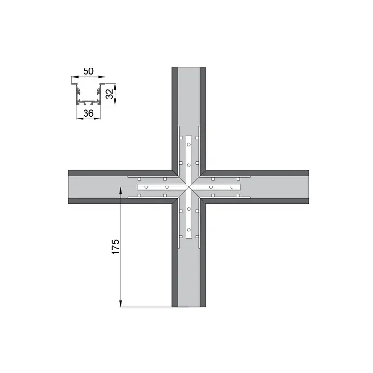 Соединитель RVE-CONNECT-X угловой X-образный для встраиваемого профиля 49х32 мм.