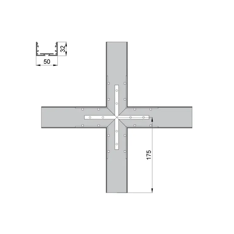 Соединитель RVE-CONNECT-X угловой X-образный для встраиваемого профиля 50x32 мм.