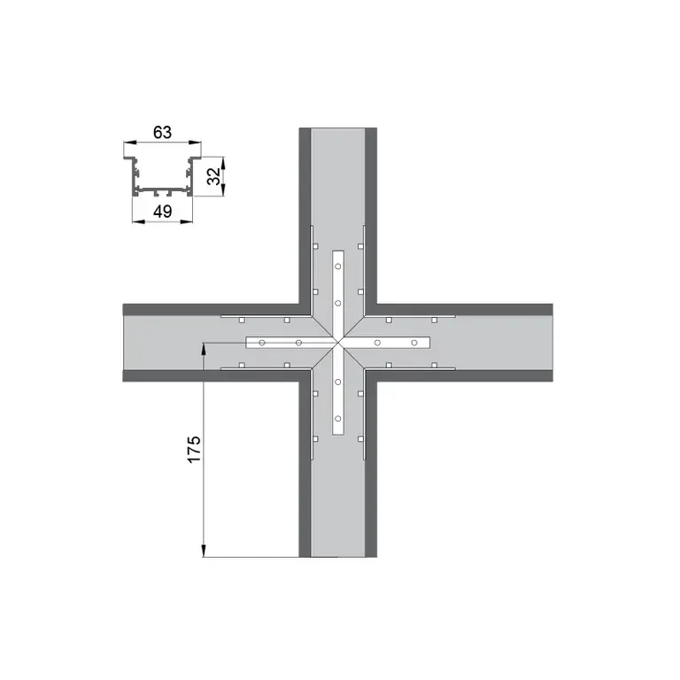 Соединитель RVE-CONNECT-X угловой X-образный для встраиваемого профиля V_63x32 мм.