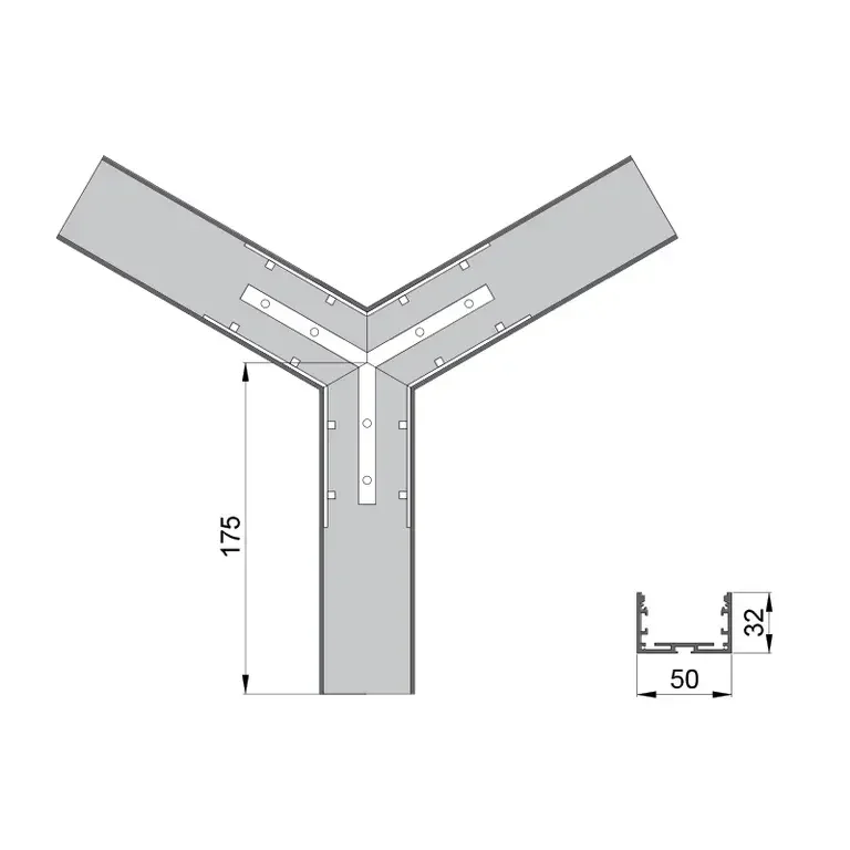 Соединитель RVE-CONNECT-Y угловой Y-образный для встраиваемого профиля 50x32 мм.