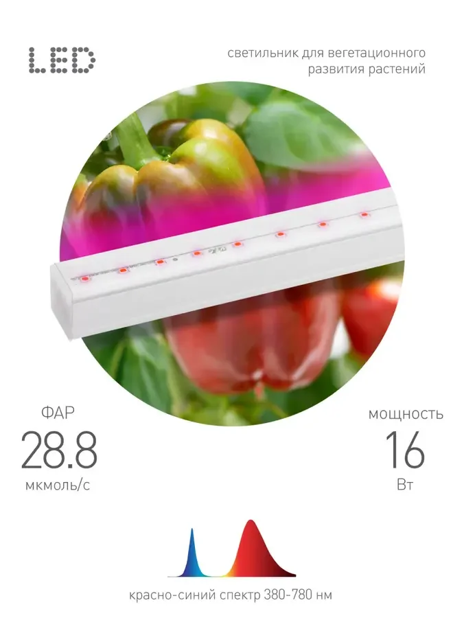 Светильник для растений, фитолампа светодиодная линейная ЭРА FITO-16W-Т5-N красно-синего спектра 16 Вт Т5