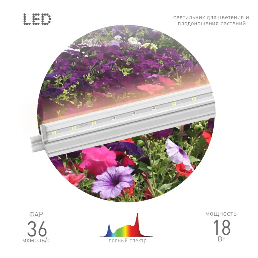 Светильник для растений, фитолампа светодиодная линейная ЭРА FITO-18W-T5-Ra90 полного спектра 18 Вт Т5