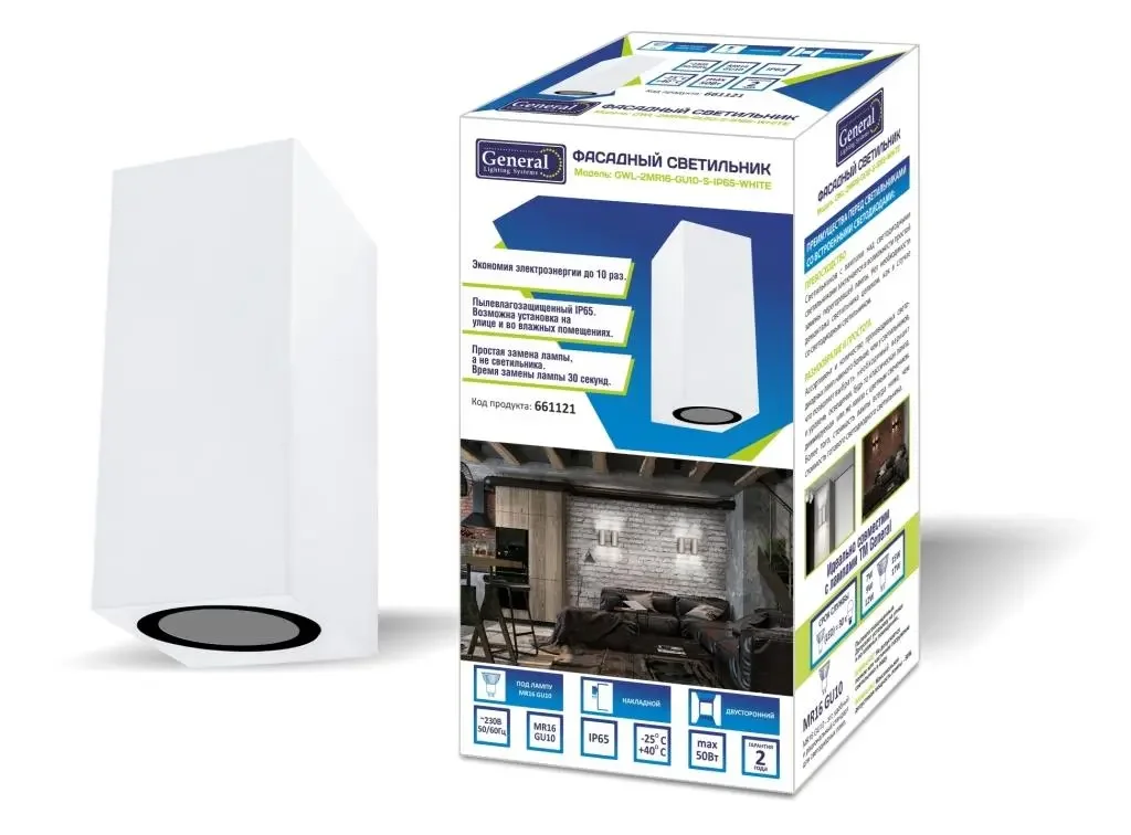 Светильник фасадный GWL-2MR16-GU10-S-IP65 WHITE