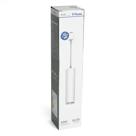 Светильник Feron AL196 трековый однофазный на шинопровод под лампу на подвесе GU10, белый