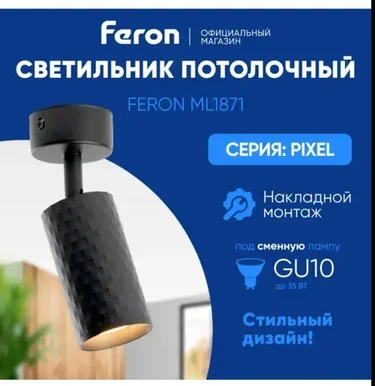 Светильник Feron ML1871 PIXEL настенно-потолочный под лампу GU10, чёрный