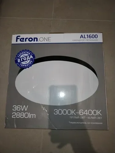 Светильник накладной со светодиодами 36W, 2880Lm, 3000К-4000К-6400K, AL1600 Feron.ONE, 48884