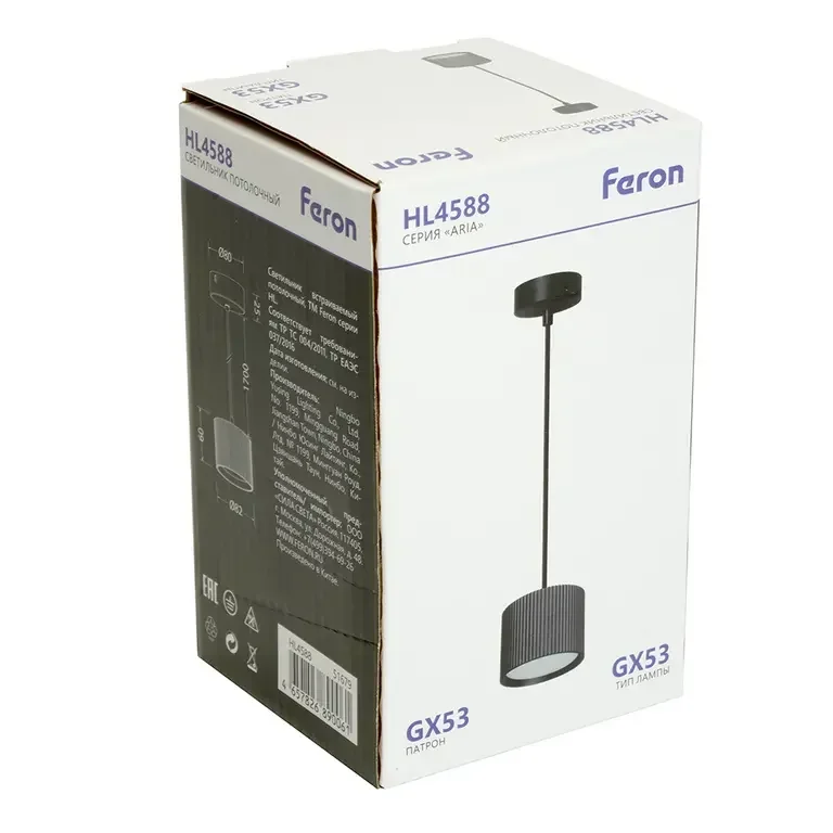 Светильник потолочный Feron Barrel HL4588 ARIA levitation 12W, 230V, GX53, черный, на подвесе 1,7 м