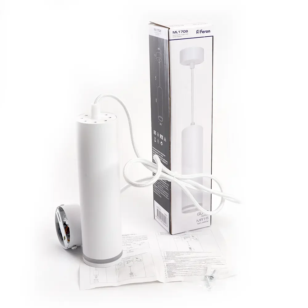 Светильник потолочный Feron ML1708 Barrel LUNA на подвесе MR16 35W 230V, белый 55*200