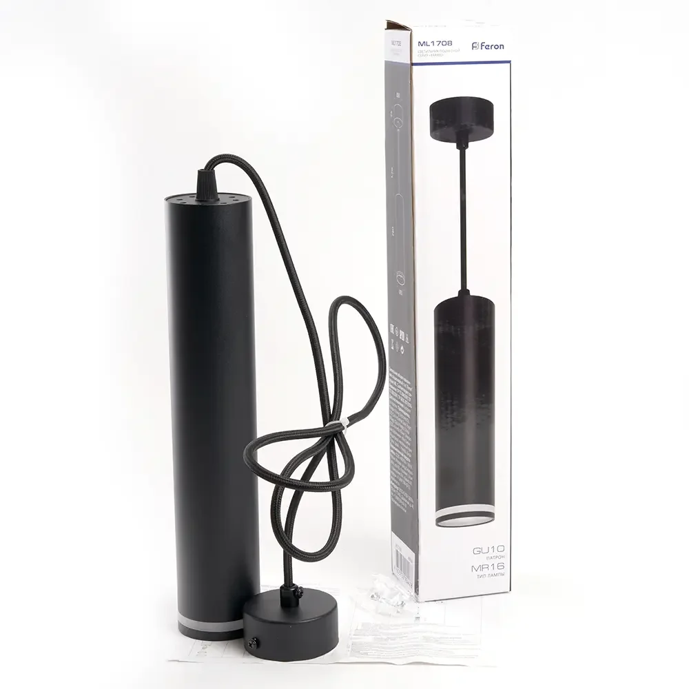 Светильник потолочный Feron ML1708 Barrel LUNA на подвесе MR16 35W 230V, черный 55*280