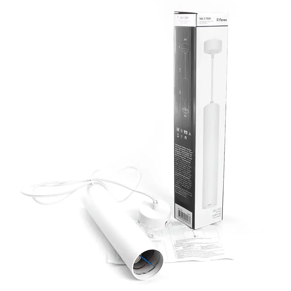 Светильник потолочный Feron ML1768 на подвесе MR16 35W 230V, белый 55*280