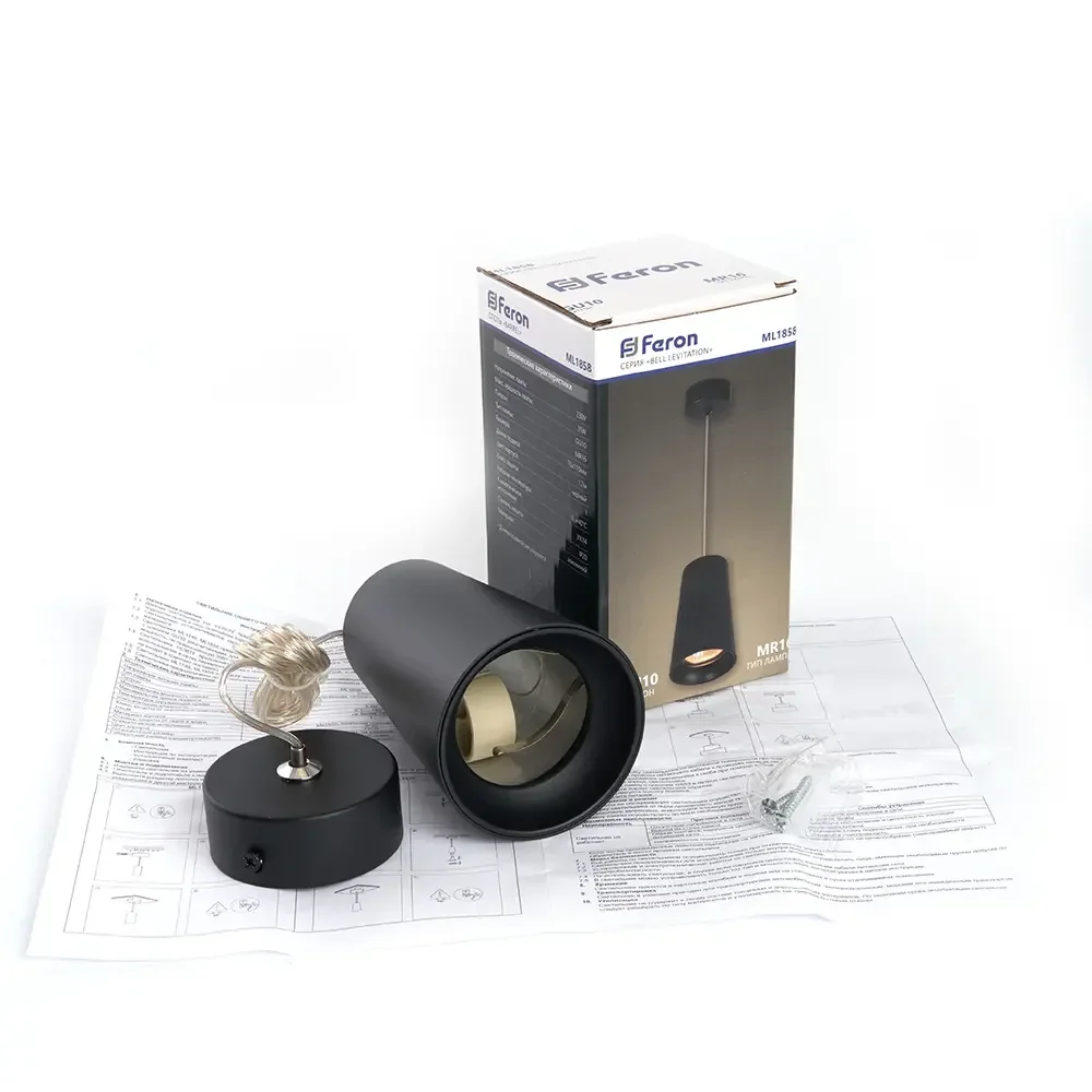 Светильник потолочный Feron ML1838 Barrel BELL levitation на подвесе1,7 м ,MR16 35W 230V, черный