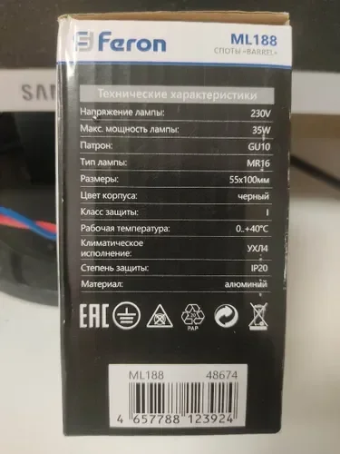 Светильник потолочный Feron ML188 Barrel PRISM MR16 GU10 35W 230V, черный