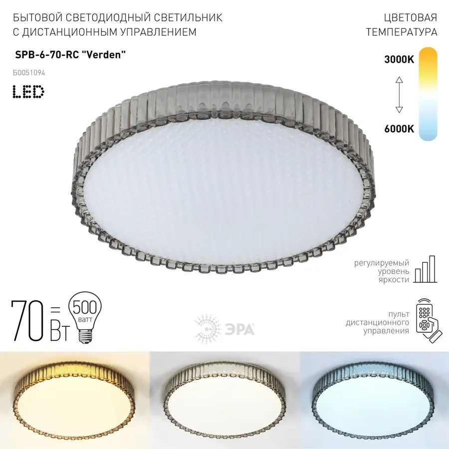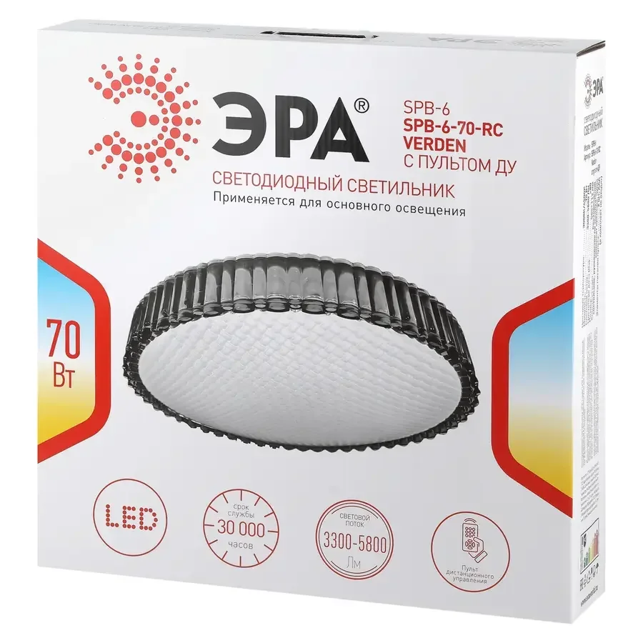 Светильник потолочный светодиодный ЭРА Классик с ДУ SPB-6-70-RC Verden 70Вт 3400-5500К