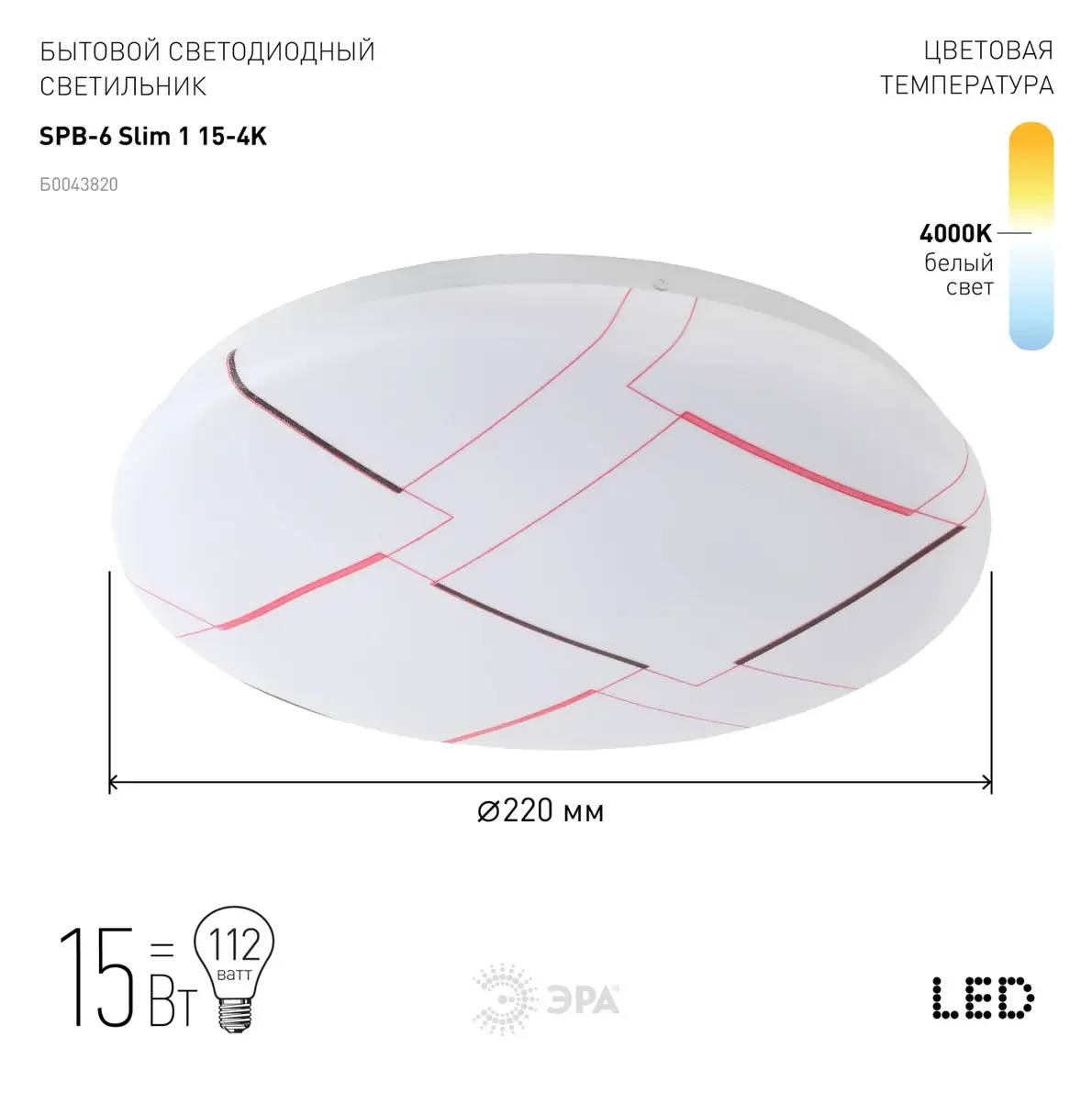 Светильник потолочный светодиодный ЭРА Slim без ДУ SPB-6 Slim 1 15-4K 15Вт 4000K
