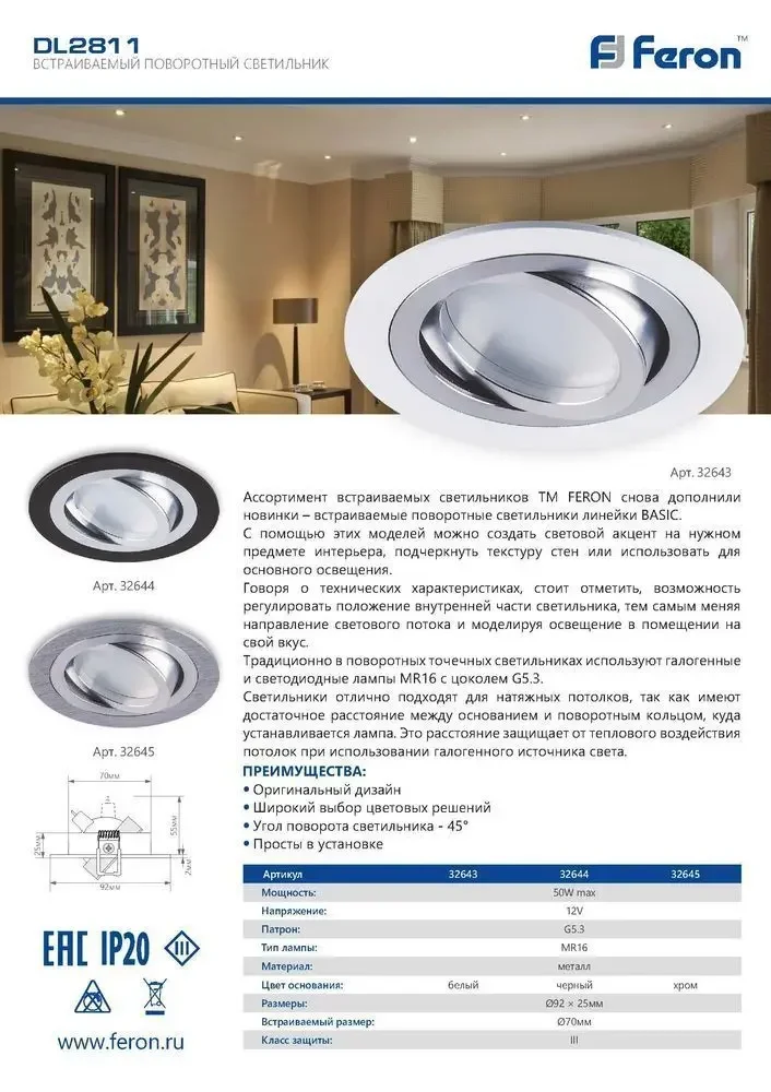 Светильник потолочный встраиваемый, MR16 G5.3, белый-хром DL2811