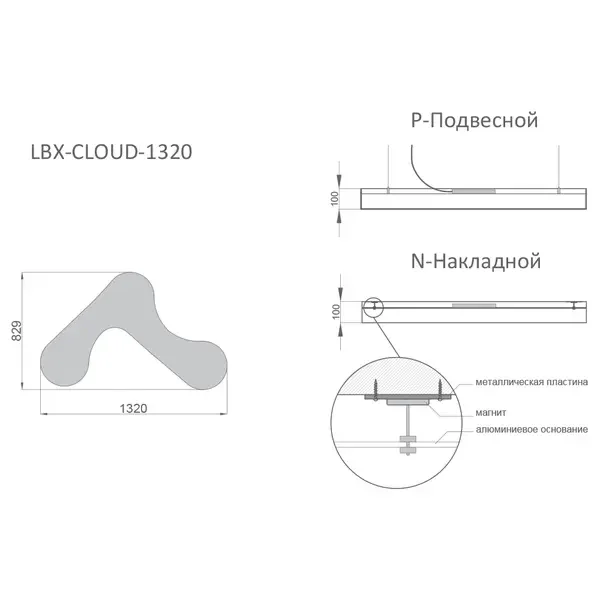 Светильник RVE-LBX-CLOUD-1320 облако 1320x829x100мм