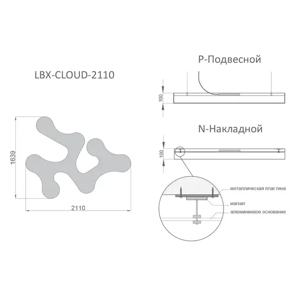 Светильник RVE-LBX-CLOUD-2110 облако 2110x1639x100мм