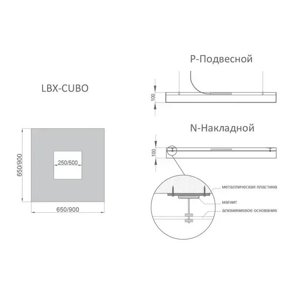 - RVE-LBX-CUBO-650 - 55Вт (5 500Лм) 650x650x100мм - 26 706 руб.