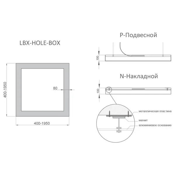 - RVE-LBX-HOLE-BOX-1950 - 190Вт (17 290Лм) 1950x1950x100мм - 75 882 руб.