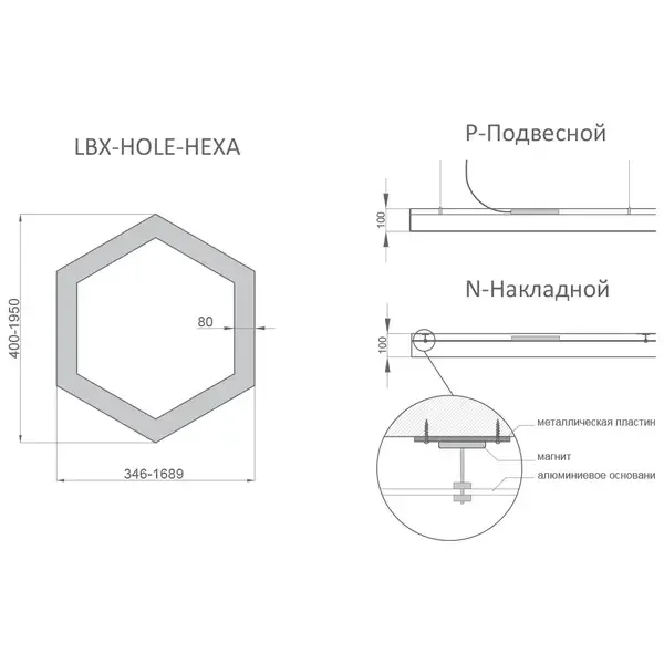 - RVE-LBX-HOLE-HEXA-800 - 54Вт (4 914Лм) 800x693x100мм - 24 383 руб.